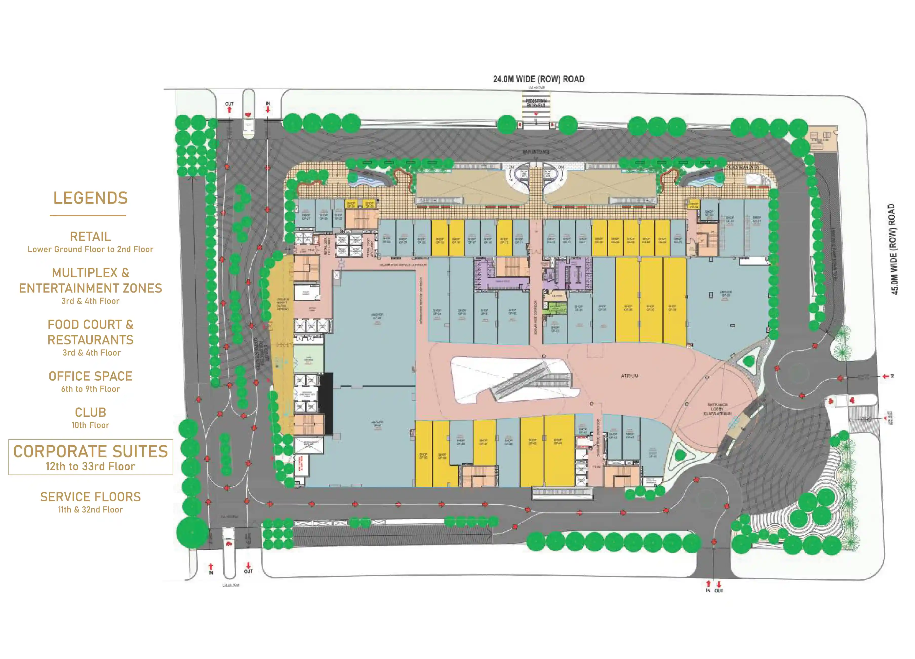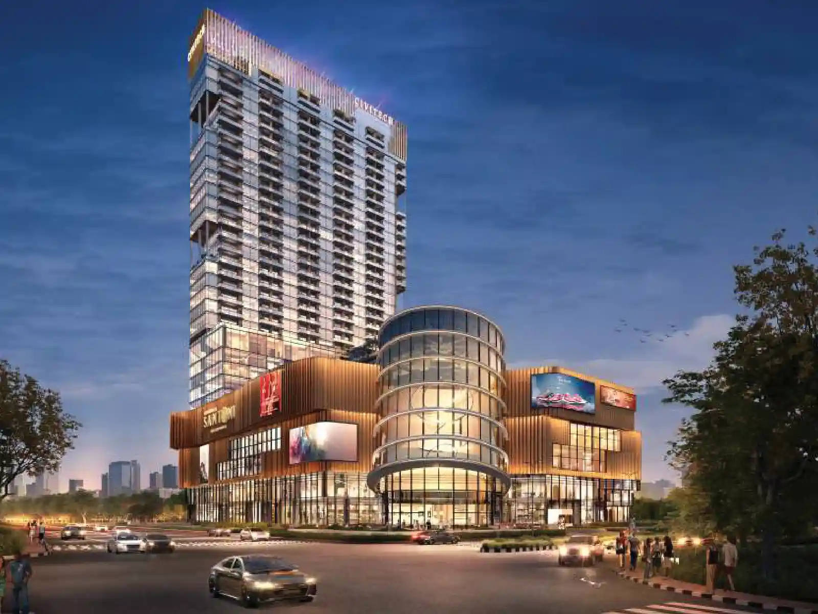 The project features several amenities, including a fully air-conditioned mall, multiple theatres, a food court, and beer bars. Retail spaces are spread across the lower ground to the second floor, while entertainment zones and dining areas are on the third and fourth floors.Corporate suites are situated from the sixth to the thirty-third floor, with a club on the tenth floor and service floors on the eleventh and thirty-second floors. Civitech Santoni also emphasizes sustainability with features like rainwater harvesting and energy-efficient lighting. The development spans approximately 4 acres and includes ample parking space, modern amenities such as high-speed elevators, and robust security measures(Civitech Santoni).